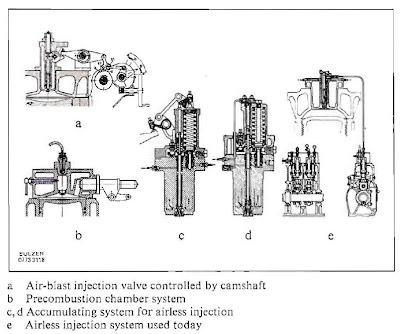 La inyección de combustible sin aire fue introducida a partir de 1932 y rápidamente se convirtió en norma para todos los tipos de motores diesel lentos, en gran medida debido a la mejora del rendimiento y reducción de las necesidades de mantenimiento.